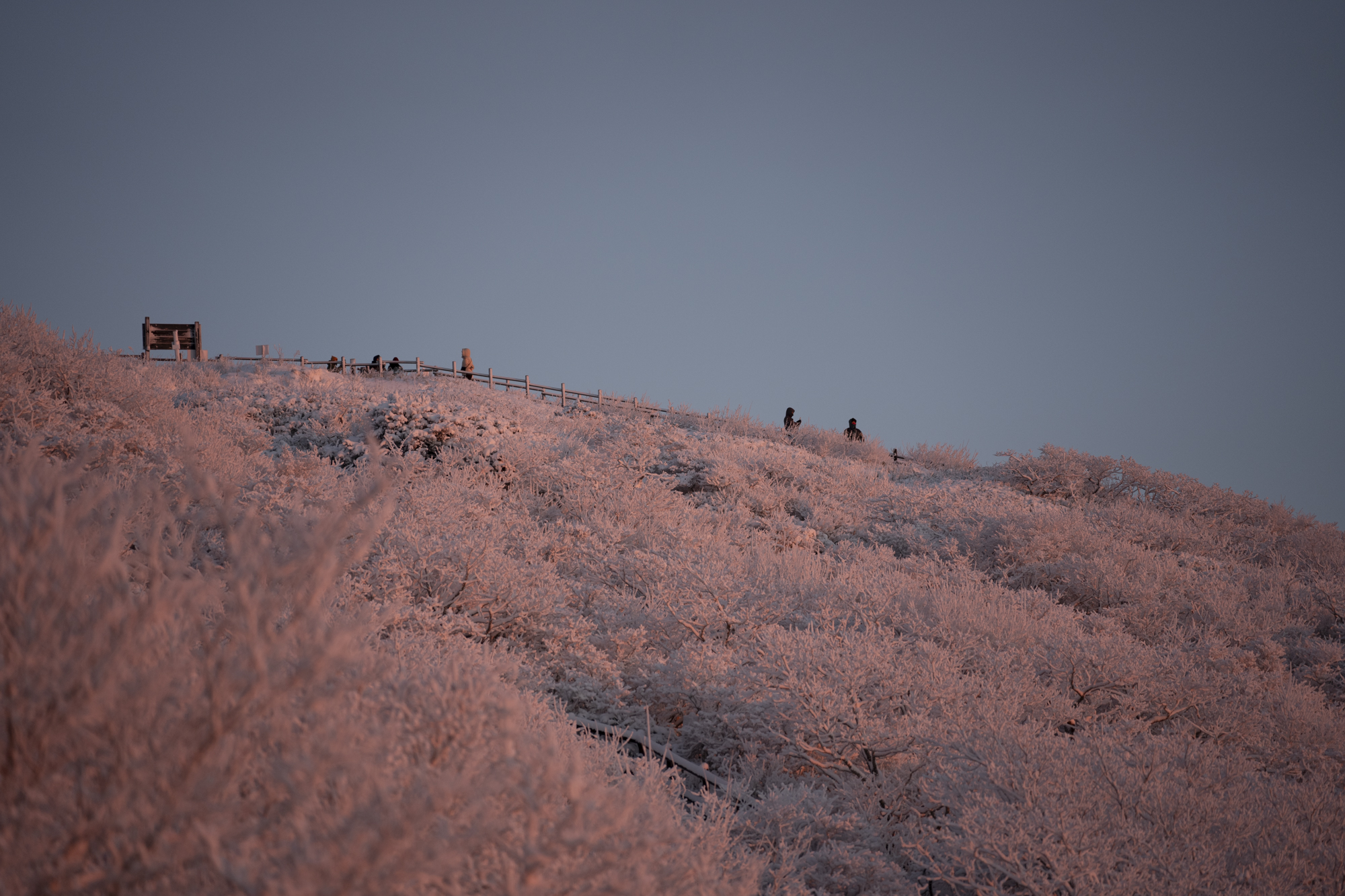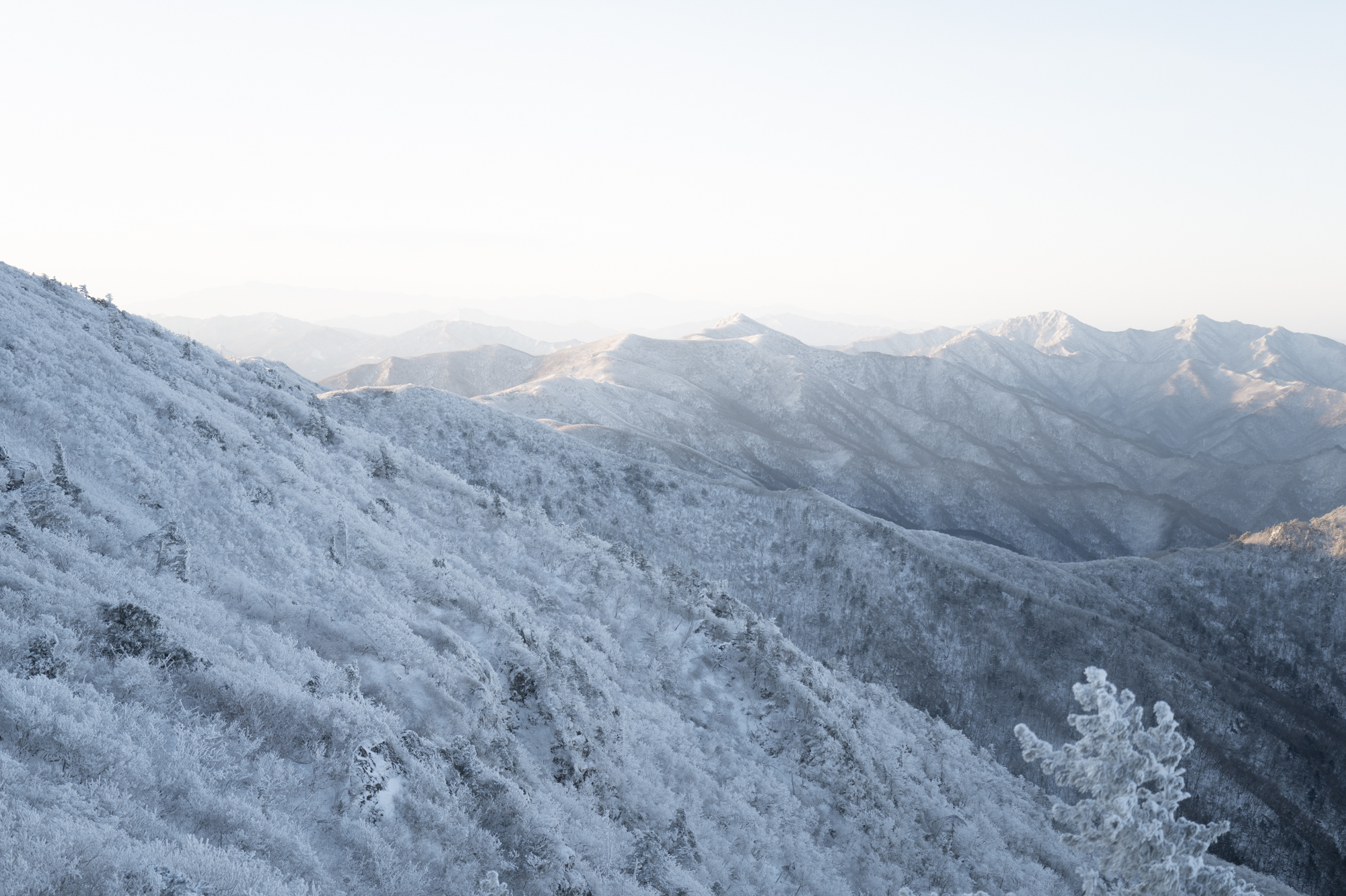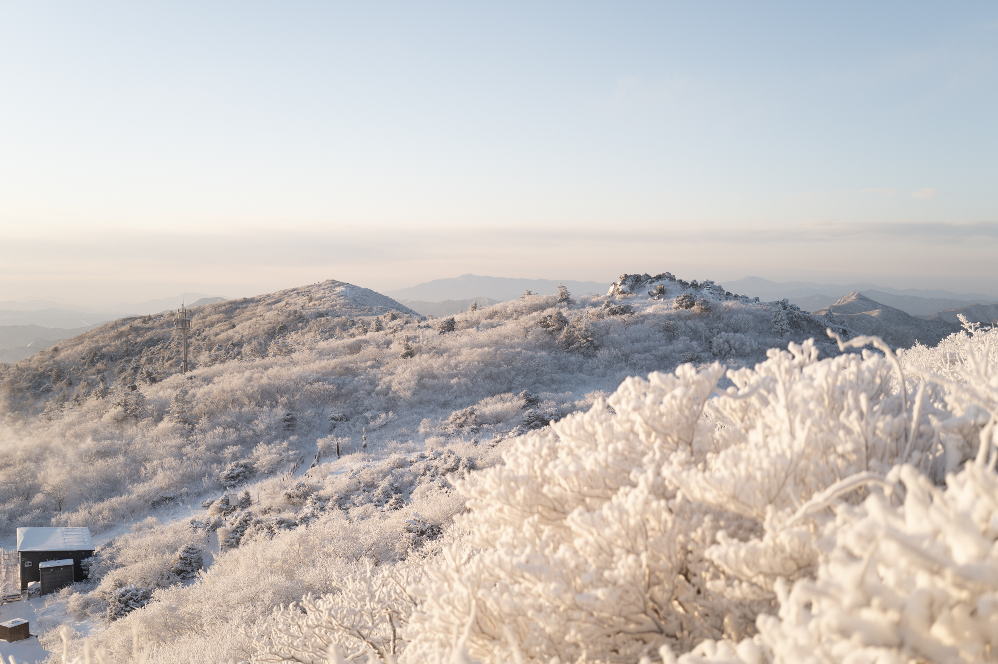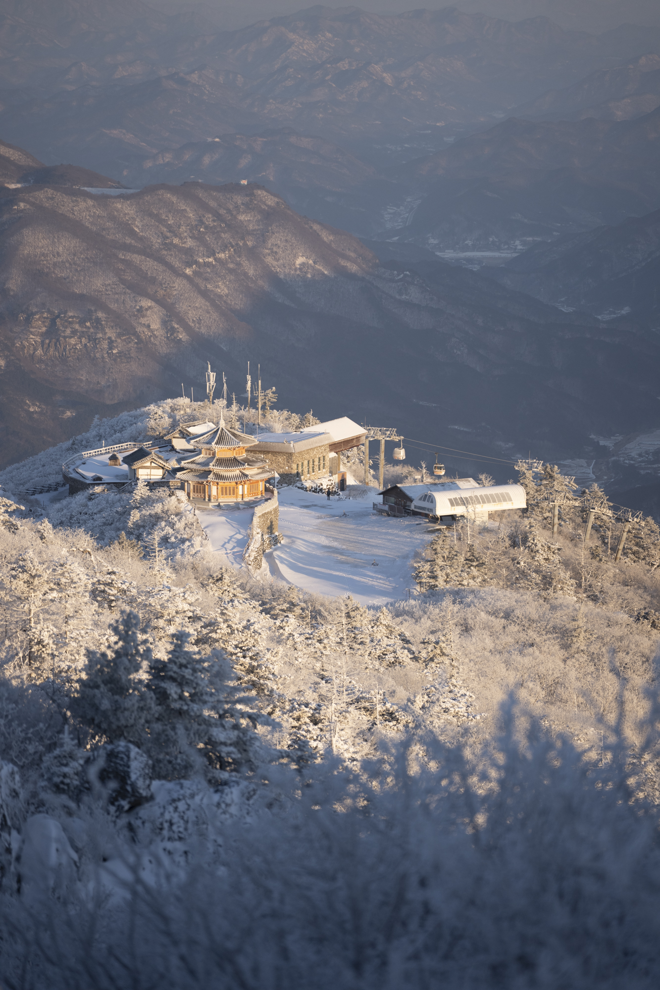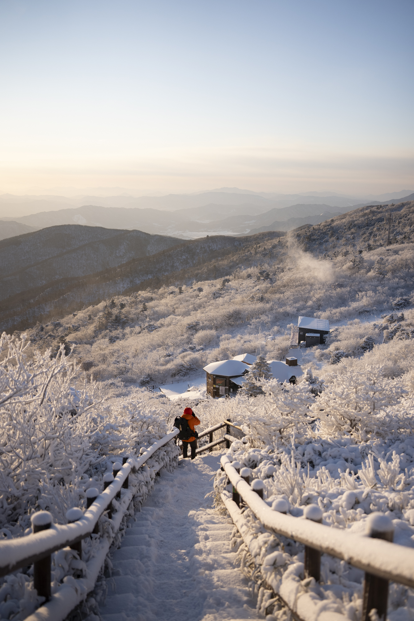 덕유산 정상 향적봉에는 두 갈래로 사람들이 줄지어 서있었다. 정상봉 인증샷을 찍기 위함이다. 인기 좋은 산이라면 쉽게 볼 수 있는 풍경이다. 나는 그들을 지나쳐 대피소로 향했다. 불필요한 짐을 두고 잠깐의 산행을 즐기기 위해서다. 리조트로 향하는 하행 곤돌라의 막차는 오후 4시 30분이라서, 4시에 나오면 사람이 없어서 여유롭게, 앞마당처럼 정상을 즐길 수 있다. 시야는 좀처럼 나아지지 않아 내일을 기약하며 대피소로 복귀했다.