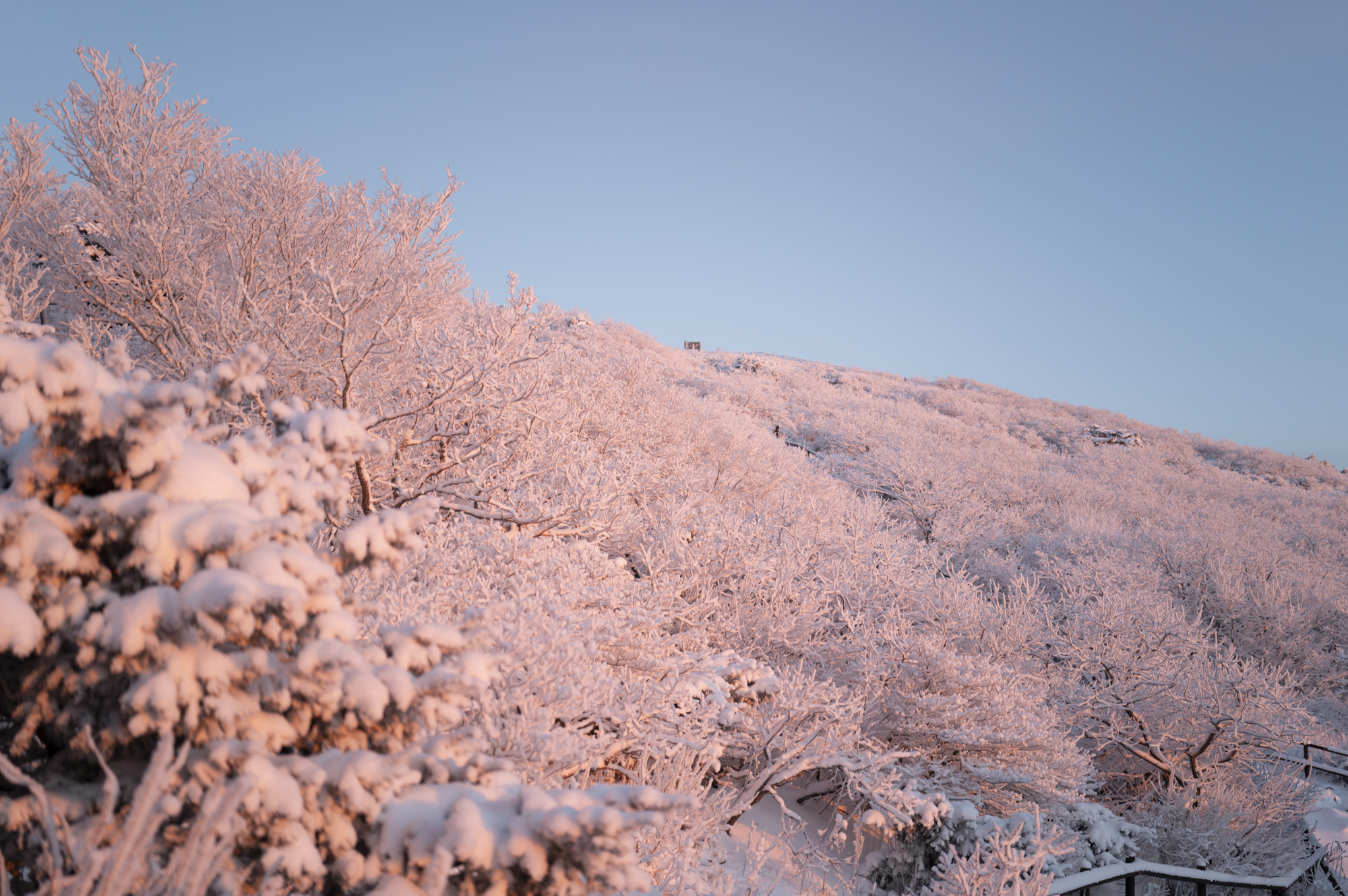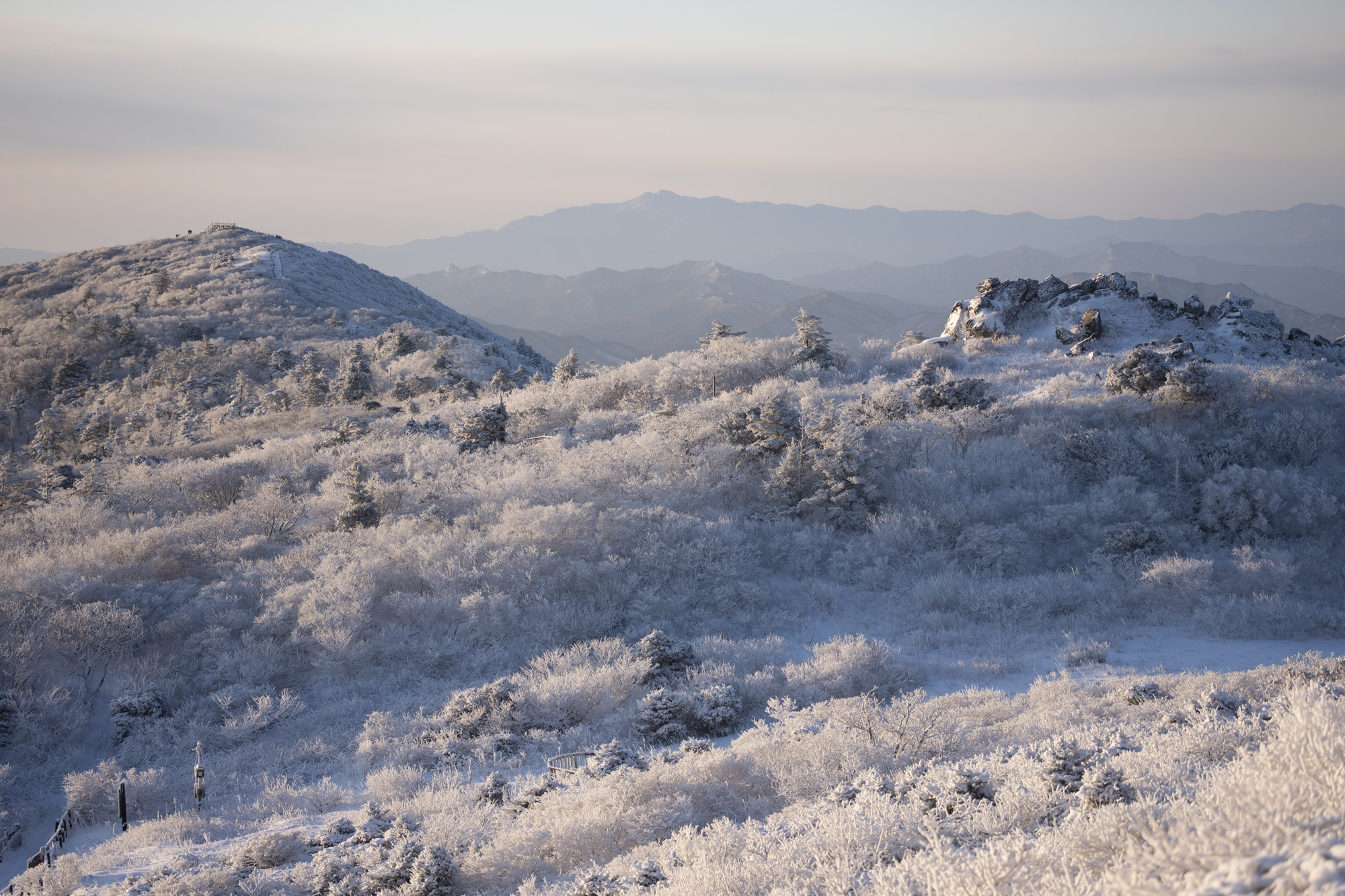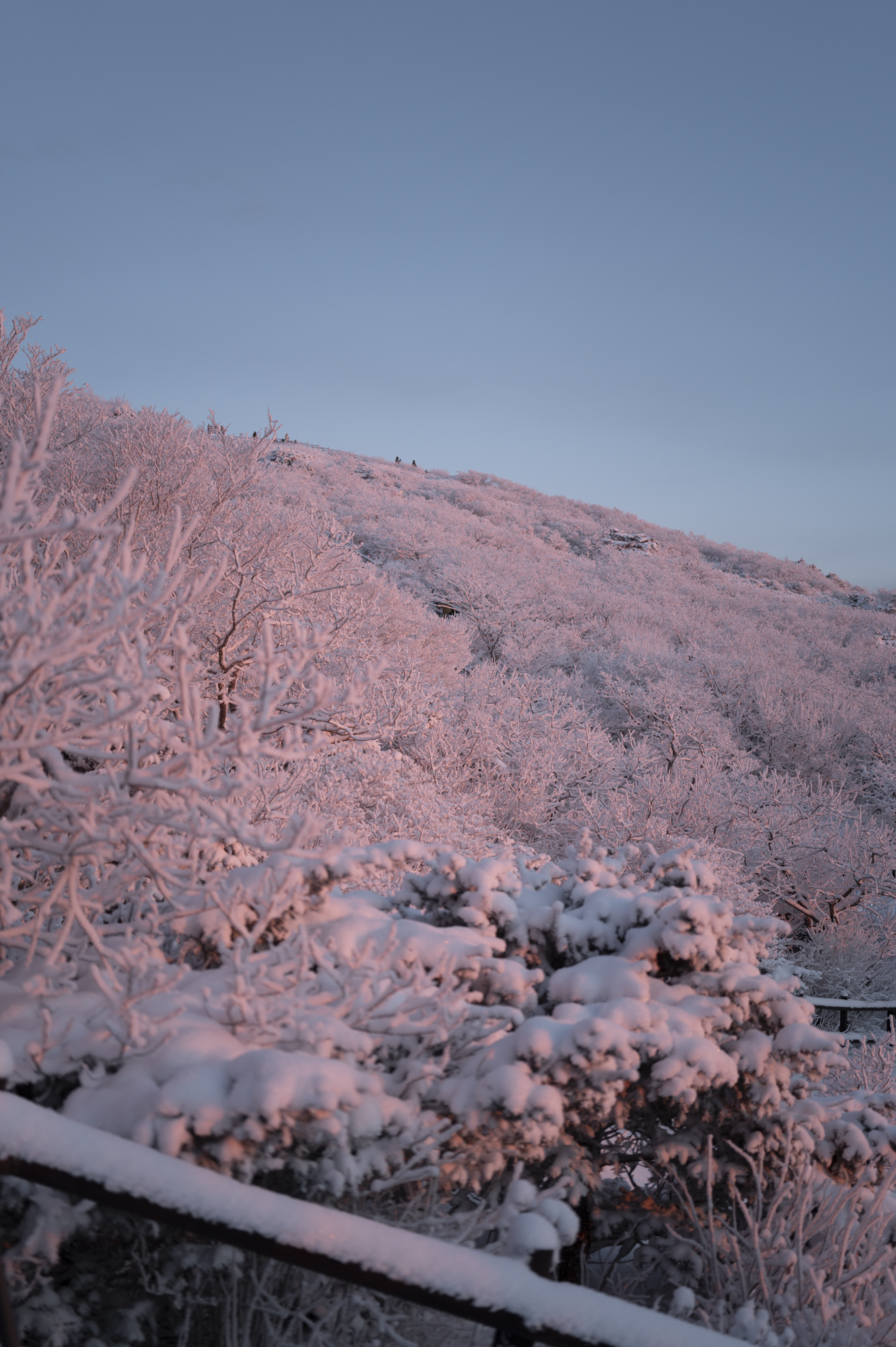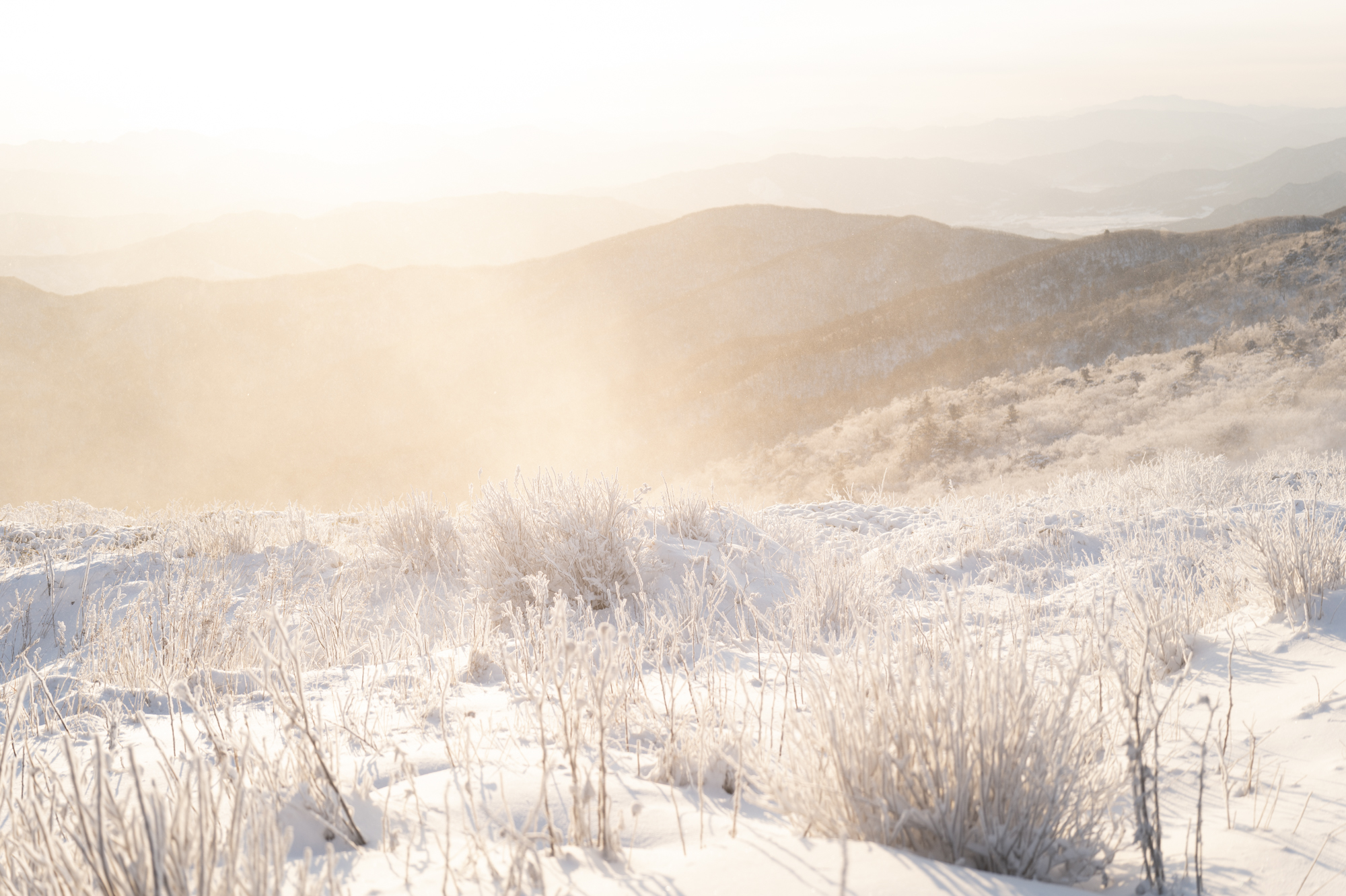 덕유산 정상 향적봉에는 두 갈래로 사람들이 줄지어 서있었다. 정상봉 인증샷을 찍기 위함이다. 인기 좋은 산이라면 쉽게 볼 수 있는 풍경이다. 나는 그들을 지나쳐 대피소로 향했다. 불필요한 짐을 두고 잠깐의 산행을 즐기기 위해서다. 리조트로 향하는 하행 곤돌라의 막차는 오후 4시 30분이라서, 4시에 나오면 사람이 없어서 여유롭게, 앞마당처럼 정상을 즐길 수 있다. 시야는 좀처럼 나아지지 않아 내일을 기약하며 대피소로 복귀했다.