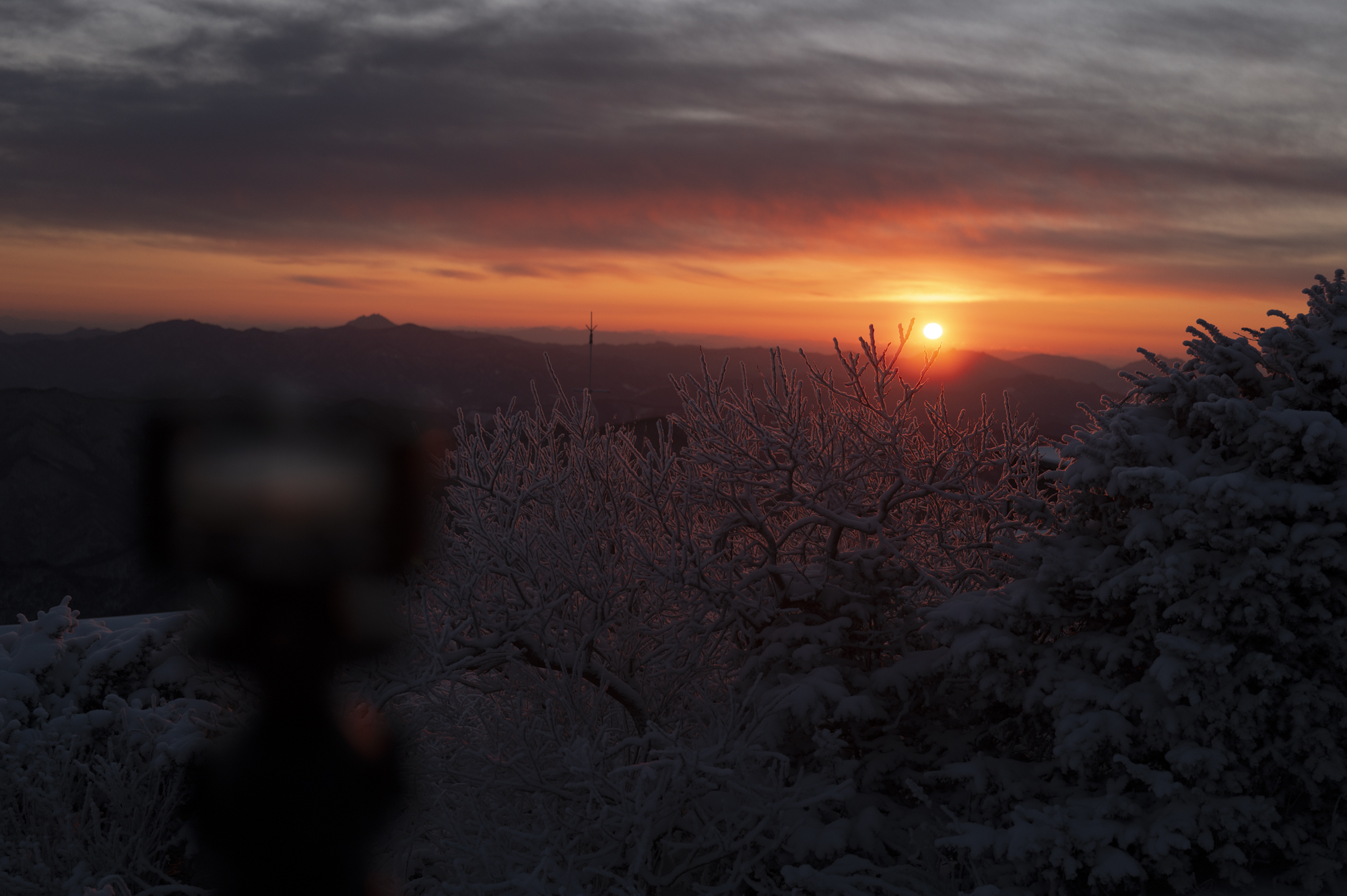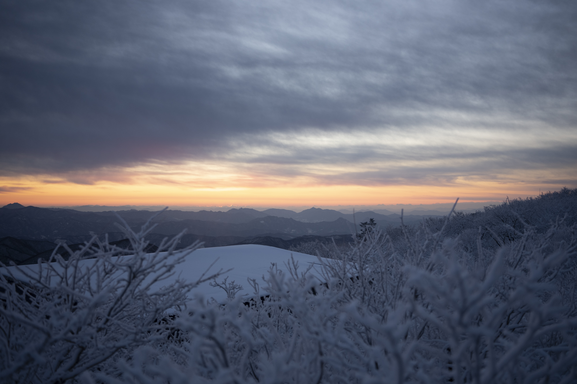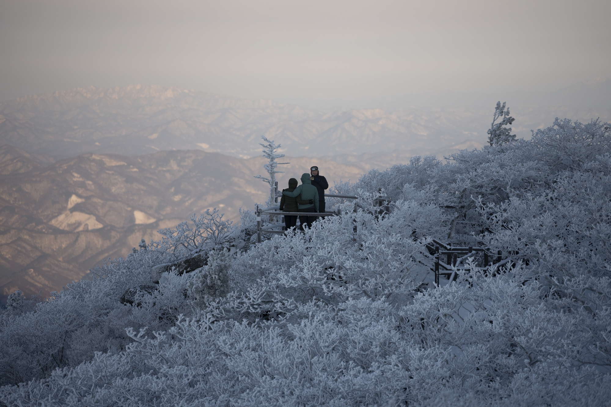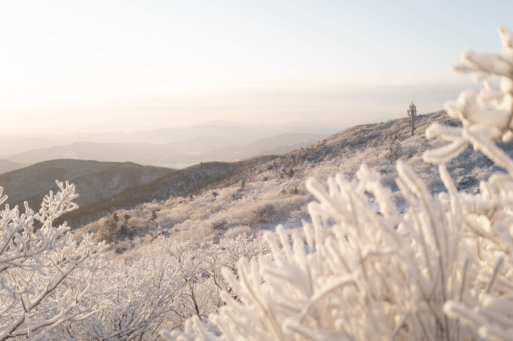 덕유산 정상 향적봉에는 두 갈래로 사람들이 줄지어 서있었다. 정상봉 인증샷을 찍기 위함이다. 인기 좋은 산이라면 쉽게 볼 수 있는 풍경이다. 나는 그들을 지나쳐 대피소로 향했다. 불필요한 짐을 두고 잠깐의 산행을 즐기기 위해서다. 리조트로 향하는 하행 곤돌라의 막차는 오후 4시 30분이라서, 4시에 나오면 사람이 없어서 여유롭게, 앞마당처럼 정상을 즐길 수 있다. 시야는 좀처럼 나아지지 않아 내일을 기약하며 대피소로 복귀했다.