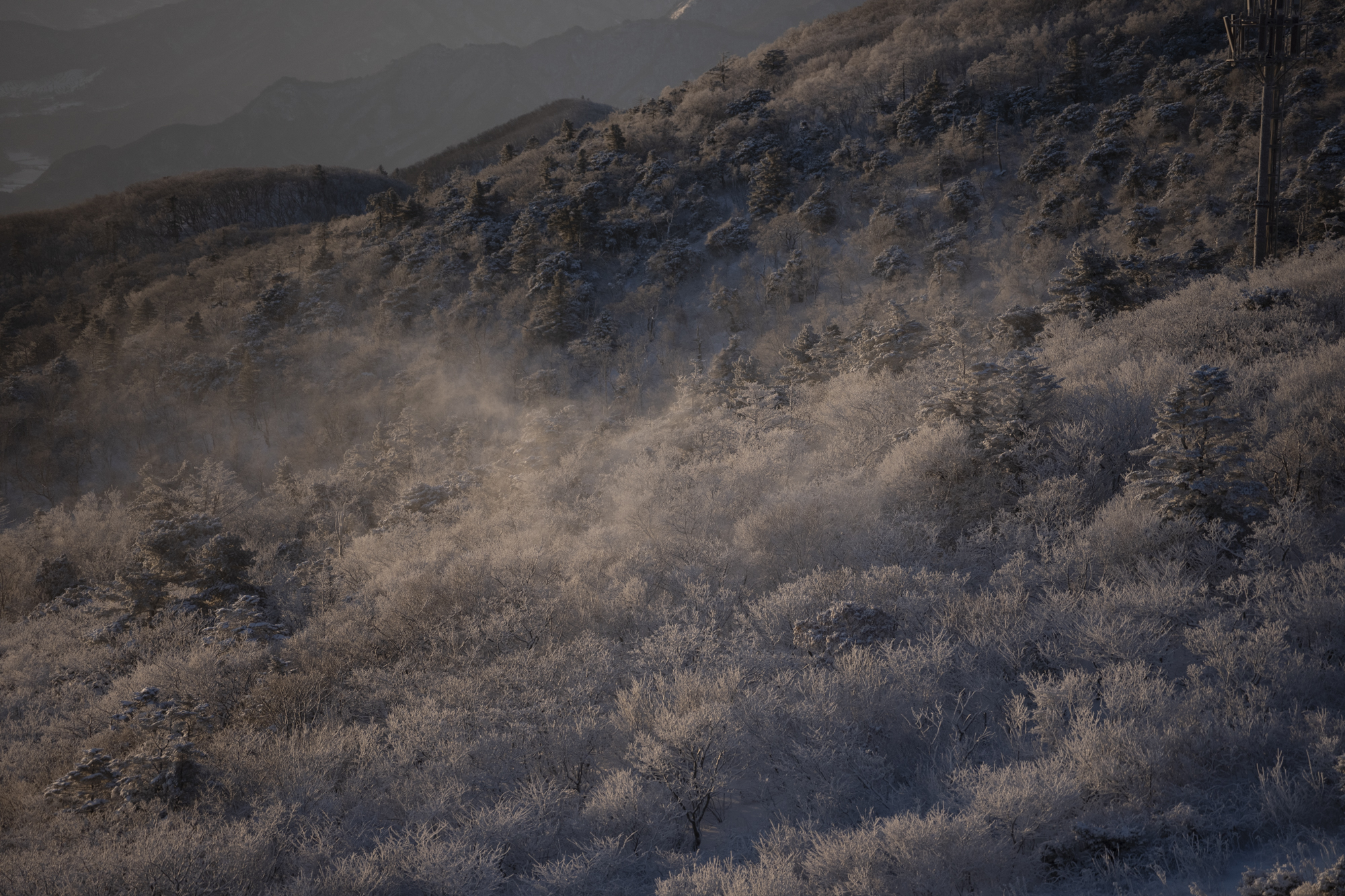 눈발은 계속 날리고 있어서 아름다운 덕유산의 풍경은 충분히 즐길 수 있었다. 다만 바람이 많이 불어 힘들었지만 고어텍스 재킷 하나면 바람 따위.