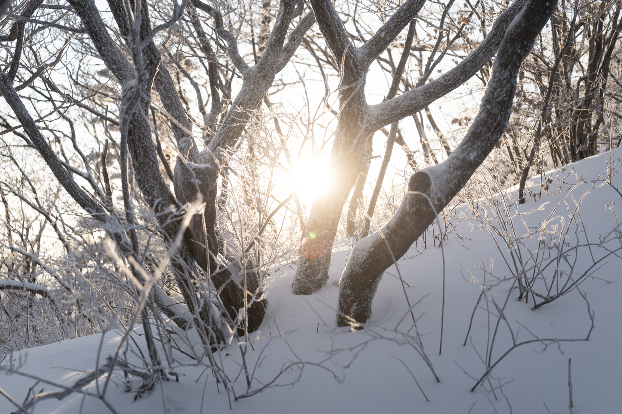작년의 마지막 여행으로 계획했으나 올해 첫 여행이 된 덕유산 1박 2일은 기대반 걱정반이었다. 매일 같이 일기예보를 보면서 너무 춥진 않을는지, 눈발 하나 날리지 않으면 어쩌지 하는 마음에 주말만을 기다렸다. 금요일 밤 느지막이 준비를 했다. 작은 백팩에는 먹을 것과 에어매트, 양말과 여분의 티셔츠를 꾸겨넣었고, 큰 크로스백에는 무려 카메라 2대와 작은 액션캠 그리고 보조 배터리 등을 챙겼다. 다음 출근길과 동일한 코스로 남부터미널에 내려 무주로 향했다.