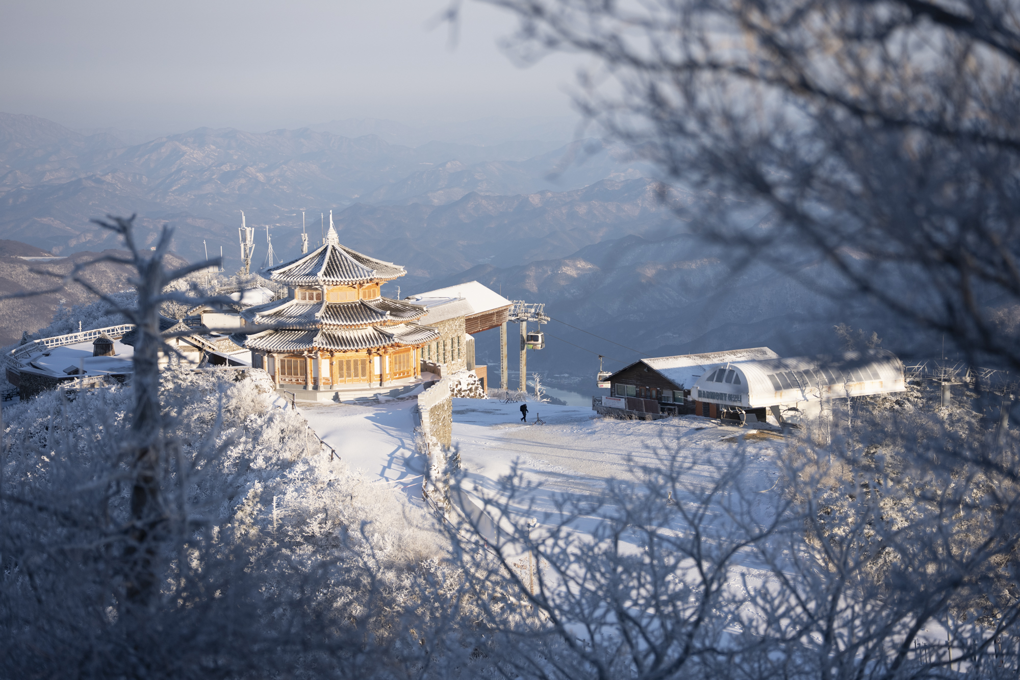 토요일 오후의 무주는 흐리고 추웠다. 무주리조트에는 날씨 따위 아랑곳하지 않고, 수많은 사람들이 스키와 스노보드를 즐기고 있었다. 화려한 스키복 사이로 산에 가는 사람 티를 팍팍 낸 오늘의 착장으로 곤돌라를 타기 위해 줄을 섰다. 곤돌라 종착지의 덕유산은 말 그대로 곰탕이었다.