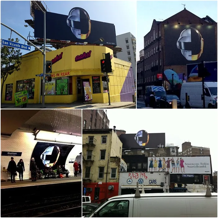 일반적으로 최근에는 SNS등을 통해 온라인 광고에 그 비중을 크게 두고 있는데 다프트 펑크는 인터넷 뿐만 아니라 요즘은 잘 하지 않는 옥외광고 등을 진행하고 있다.