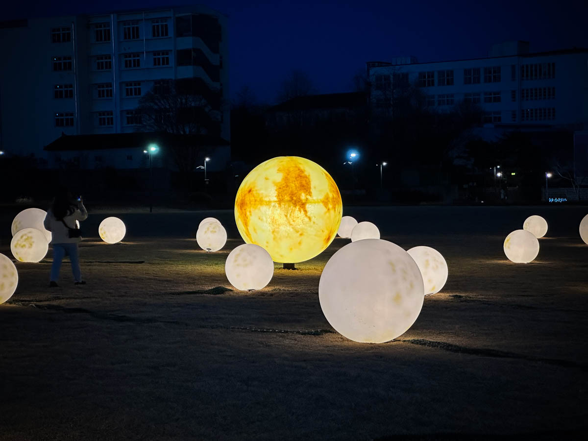 공원 중간에 설날을 맞이해서 꾸며놓은 것으로 추정되는 조명이 있었다. 추운 날이라 많은 사람들은 없었지만 예쁜 광경에 다들 사진찍고 있었다. 그래서 나도 한 컷.