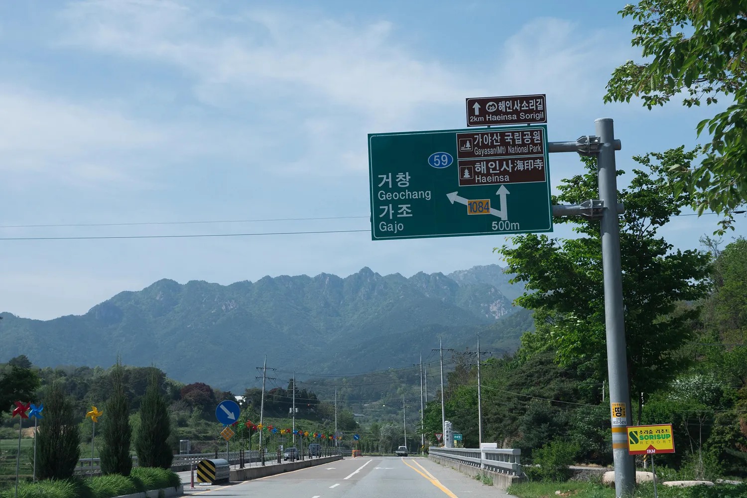 해인사는 합천읍내에서도 거리가 꽤 된다. 나름 군내에서는 가장 유명한 명승지이다 보니 도로가 넓고 꽤 잘 꾸며져 있다. 저 멀리 높은 산능성이가 너무 멋있다.