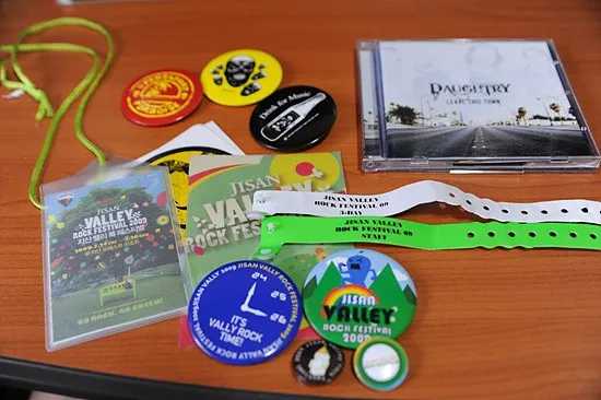 지산락페의 흔적들 다양한 종류의 티셔츠랑 타올도 판매를 했지만 디자인이 맘에 안 들어서 뭘 하나 사볼까 하다가 뱃지랑 스티커셋트를 구입했다. 벳지들이 참 귀엽다. 캬캬