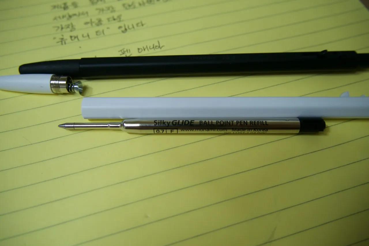 올 블랙, 화이트로 하니 모나미 볼펜도 꽤나 봐 줄만하다.