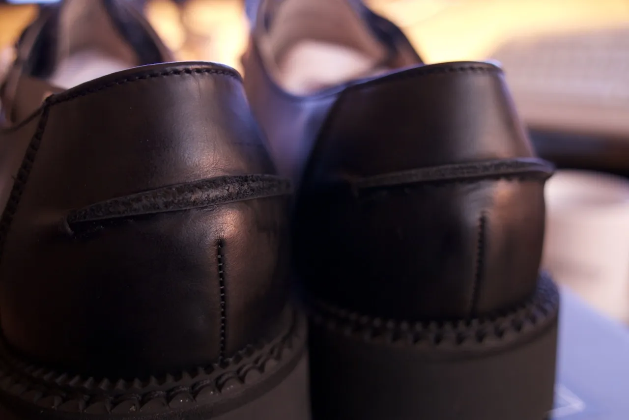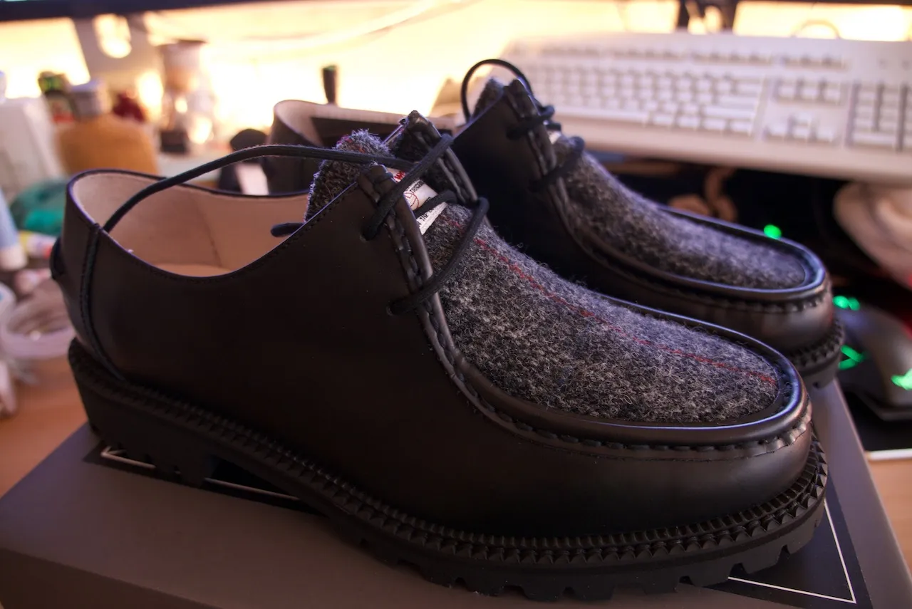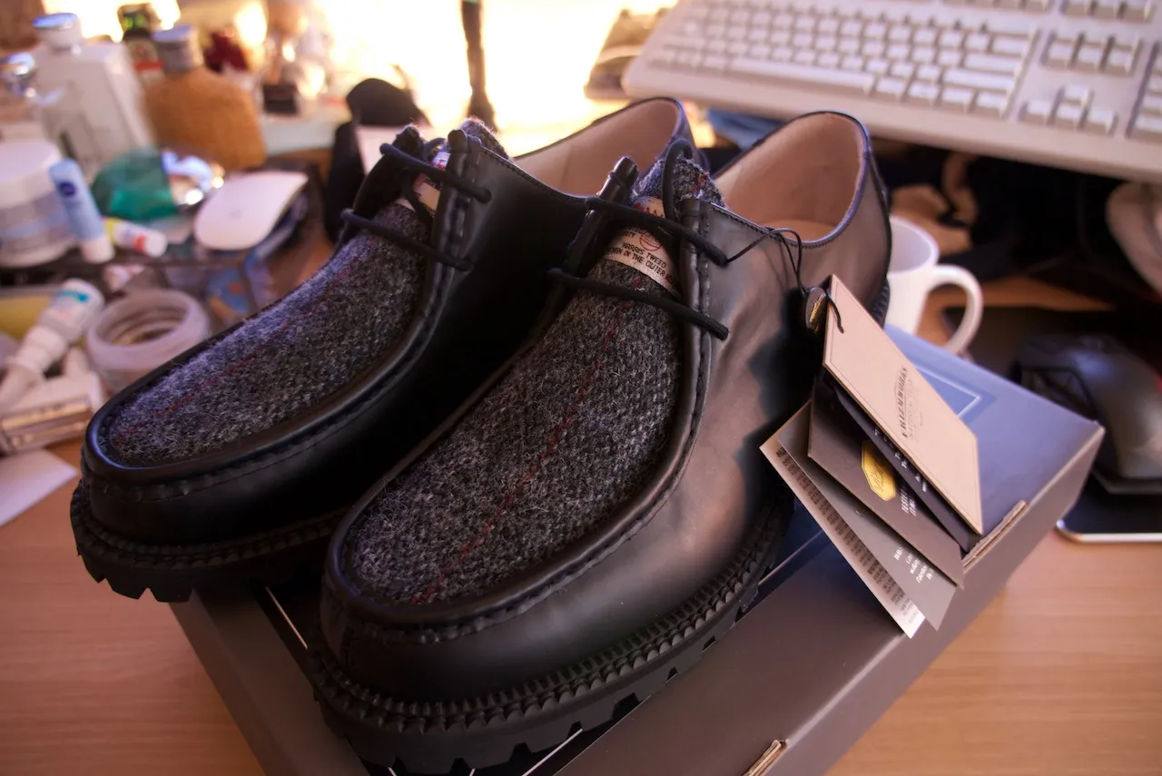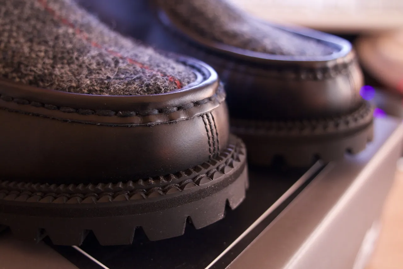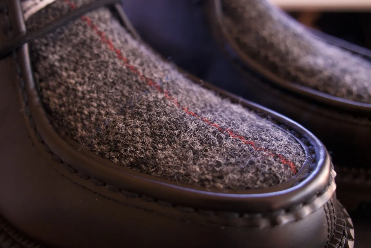 발등 부분만 해리스트위드로 되어었고 나머지 사이드 쪽은 가죽으로 둘러져 있다.