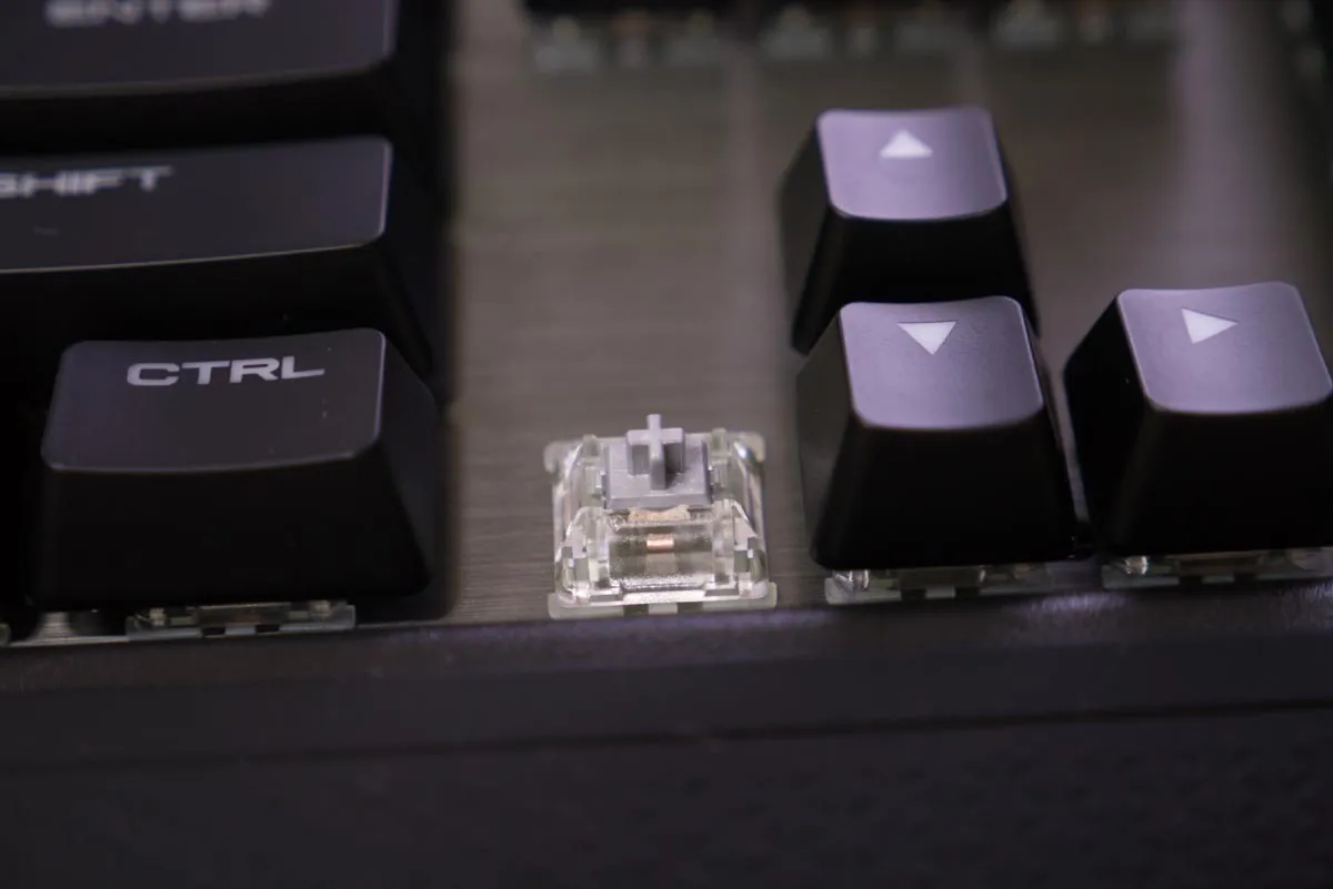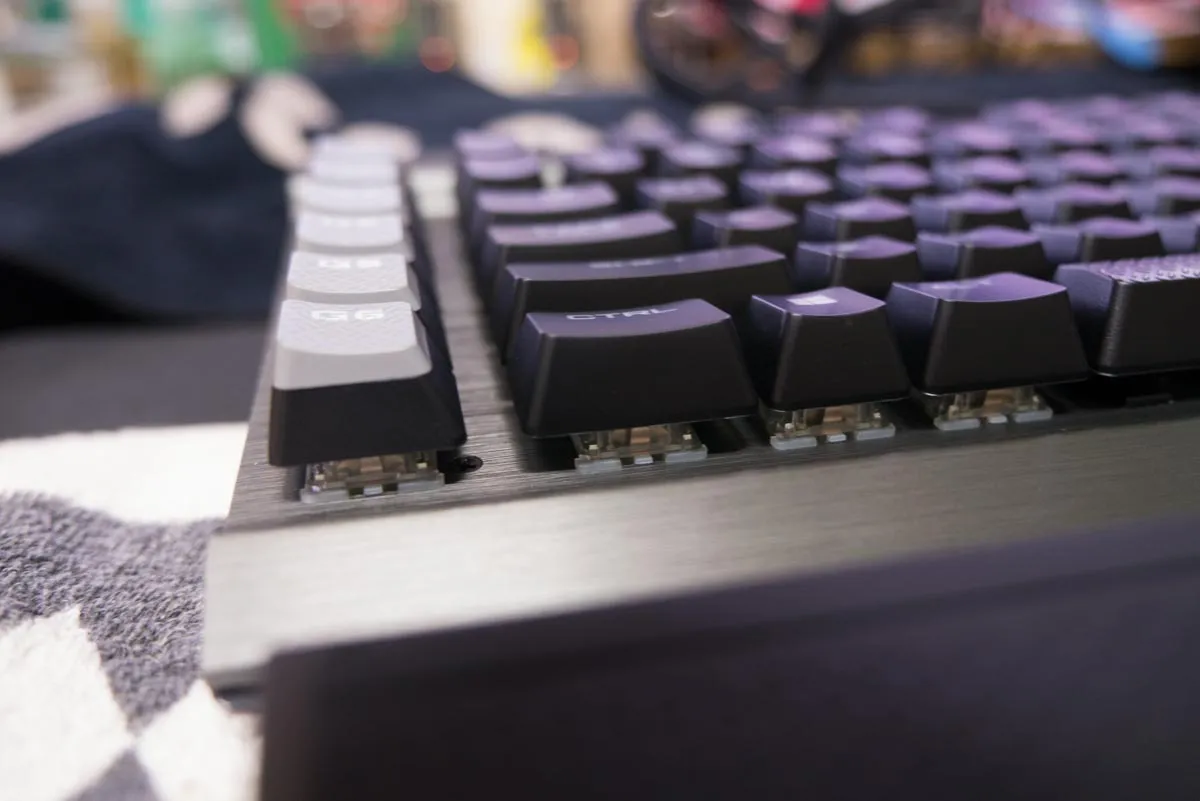 건메탈 색상의 비키스타일의 키보드로 먼지에는 조금 취약하다.