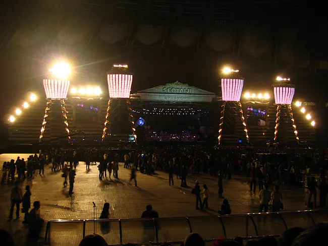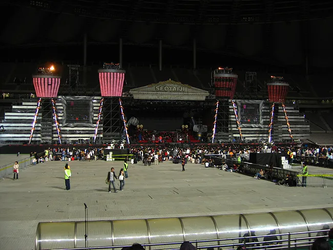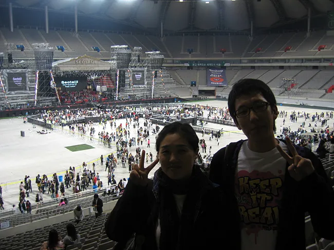 도착하고 버스에서 내렸는데 경기장안에서 막바지 리허설하는 소리가 들렸다.