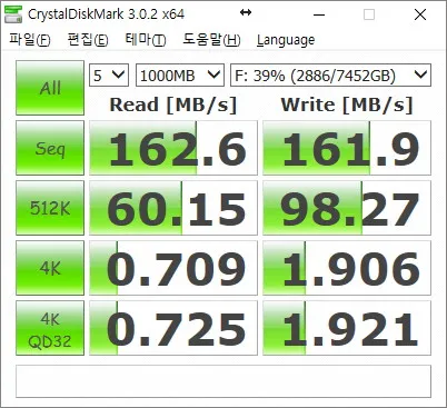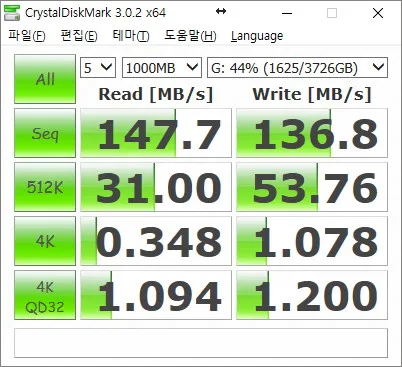 그냥 일반적인 5400rpm USB 3.0 하드 디스크의 속도이다.