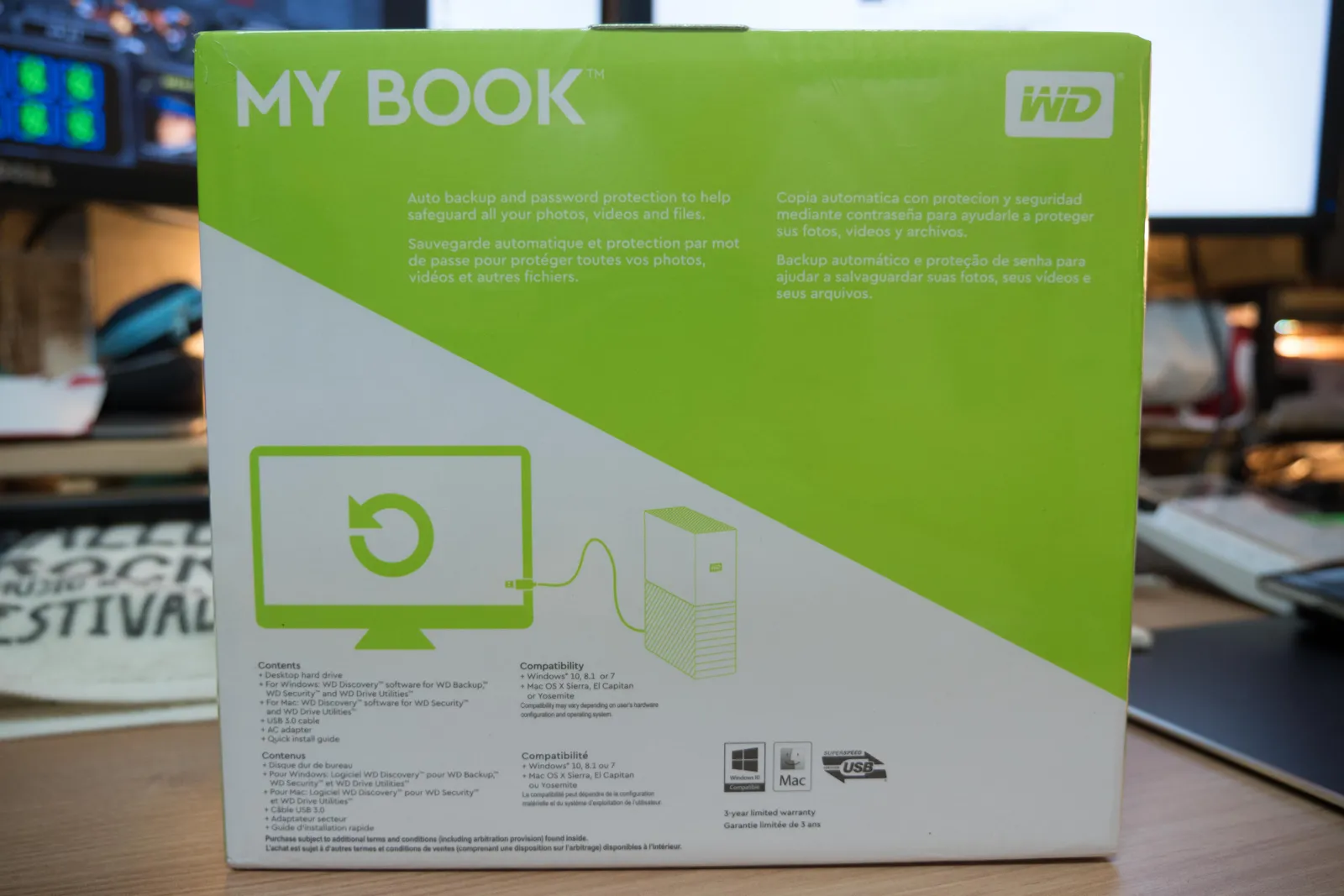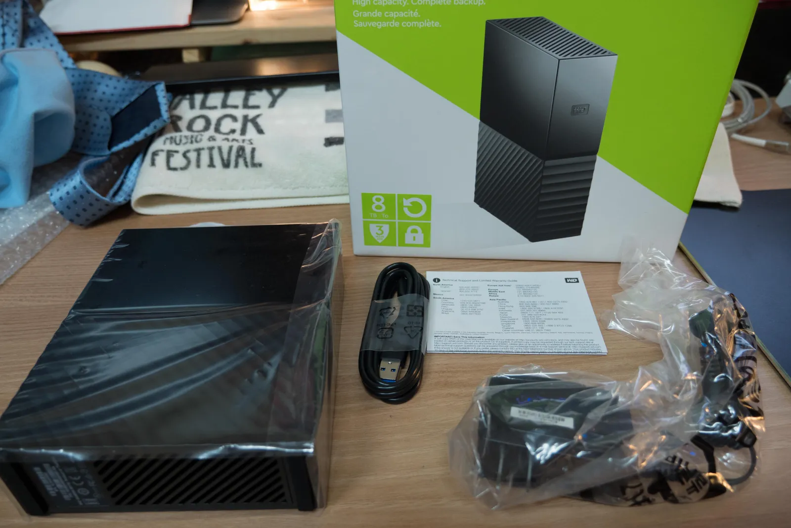 외장하드 본체, USB 3.0케이블, 전원 케이블.
