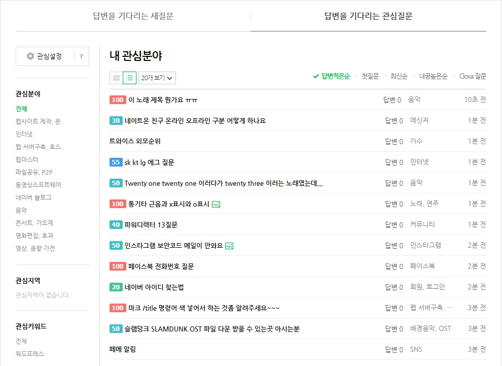 최근 다시 시작한 취미 생활이다. 네이버 지식인 답변 달기
