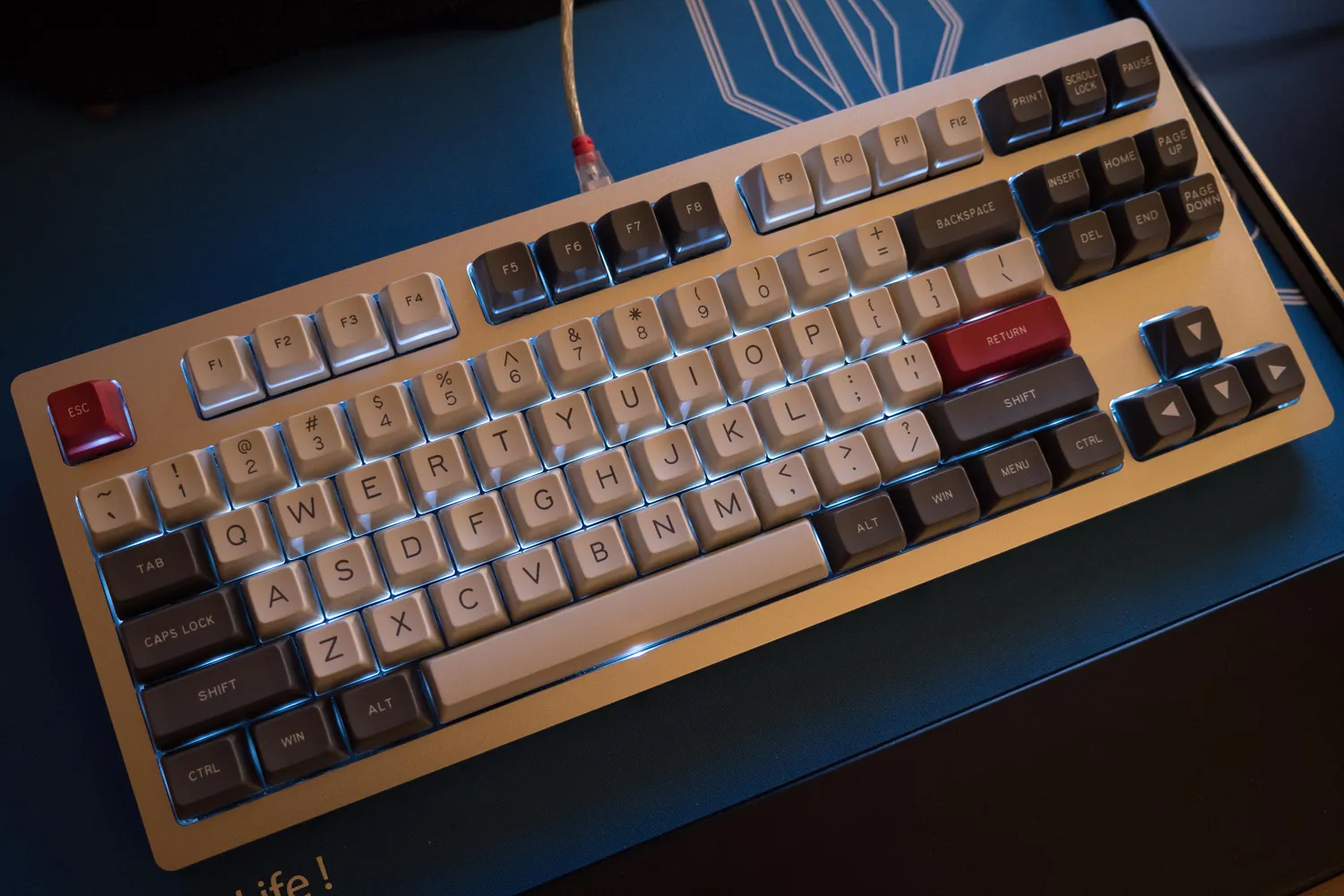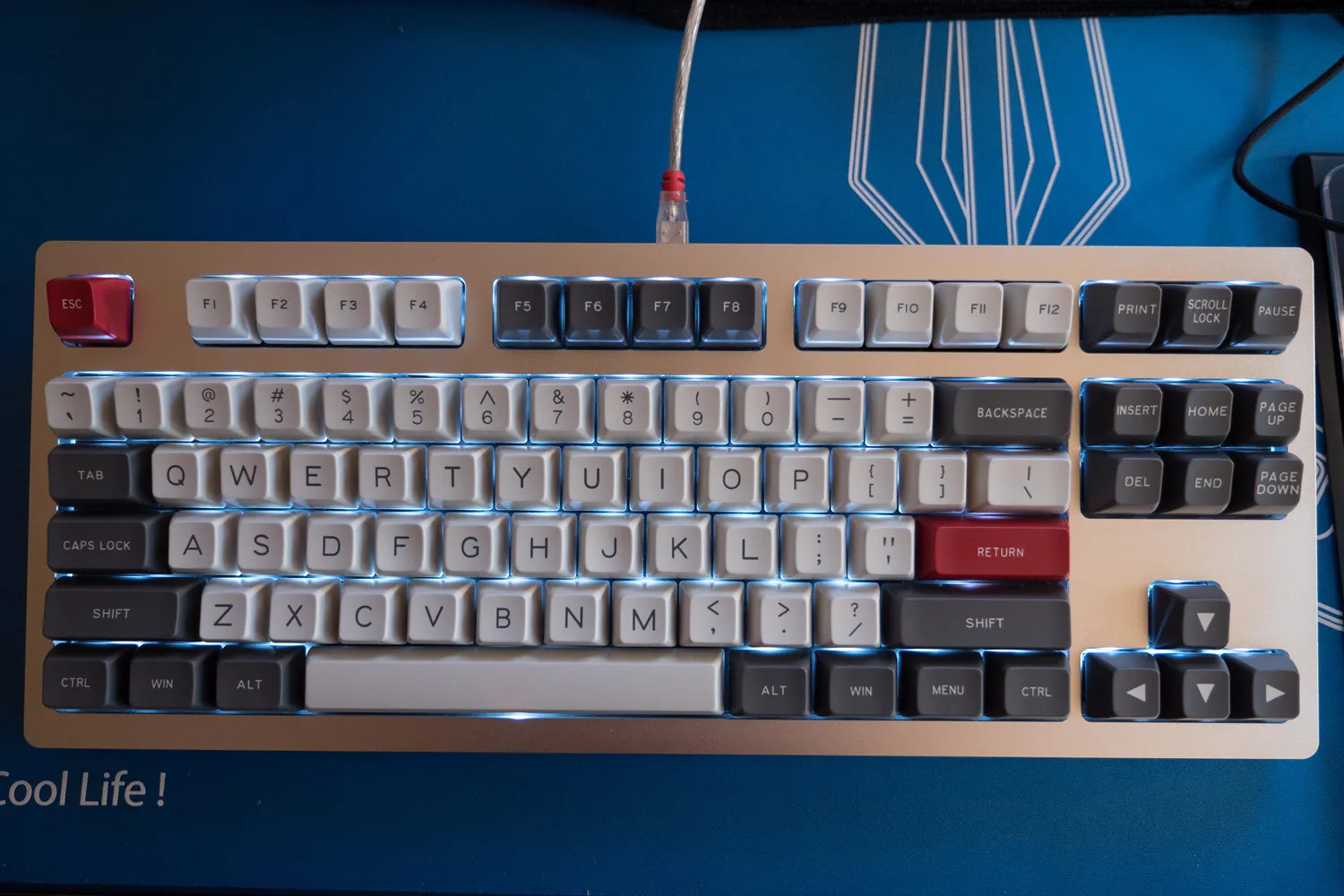 묵직한 알루미늄 하우징에 SA 키캡까지 끼우놓으니 내가 가진 키보드 중 색상만으로는 가장 만족스럽다.