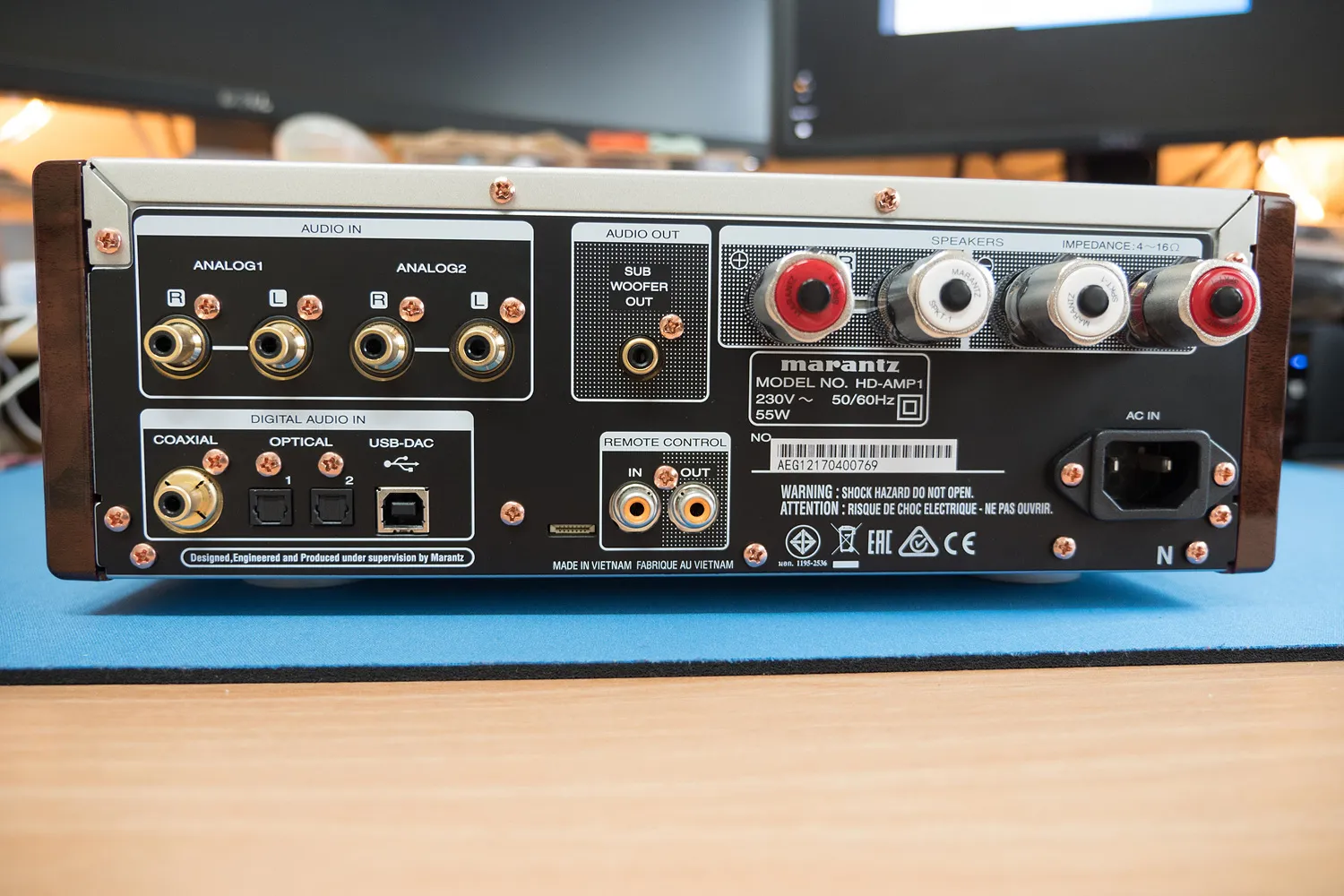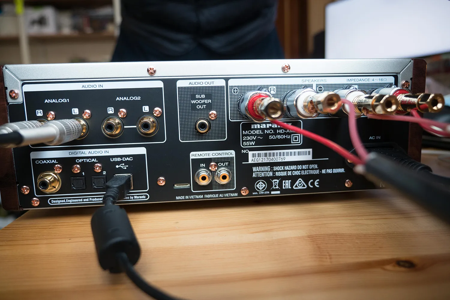 DAC 기능의 코엑셜, 옵티컬*2, USB 단자, 다른 마란츠 기기와 리모컨 기능을 공유하기 위한 단자가 있다.