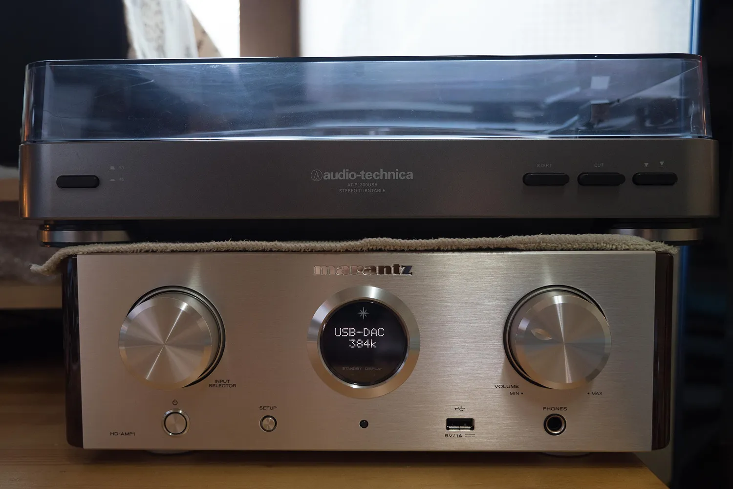 나는 아날로그 쪽에 턴테이블과 시디플레이어를 연결하고 컴퓨터는 USB로 연결했다.