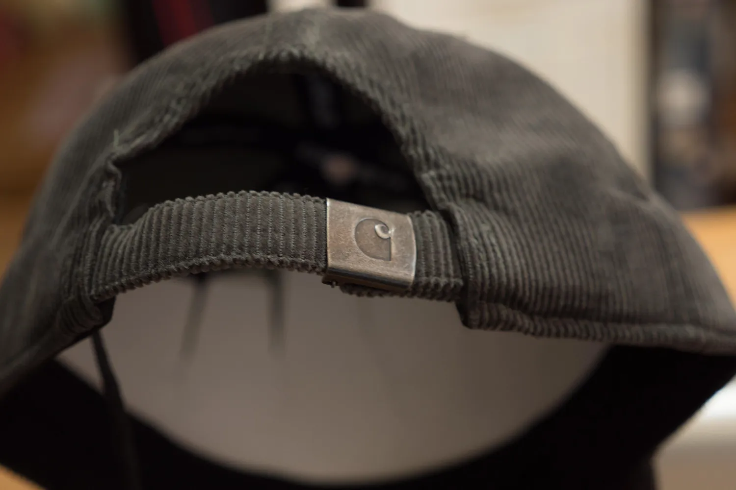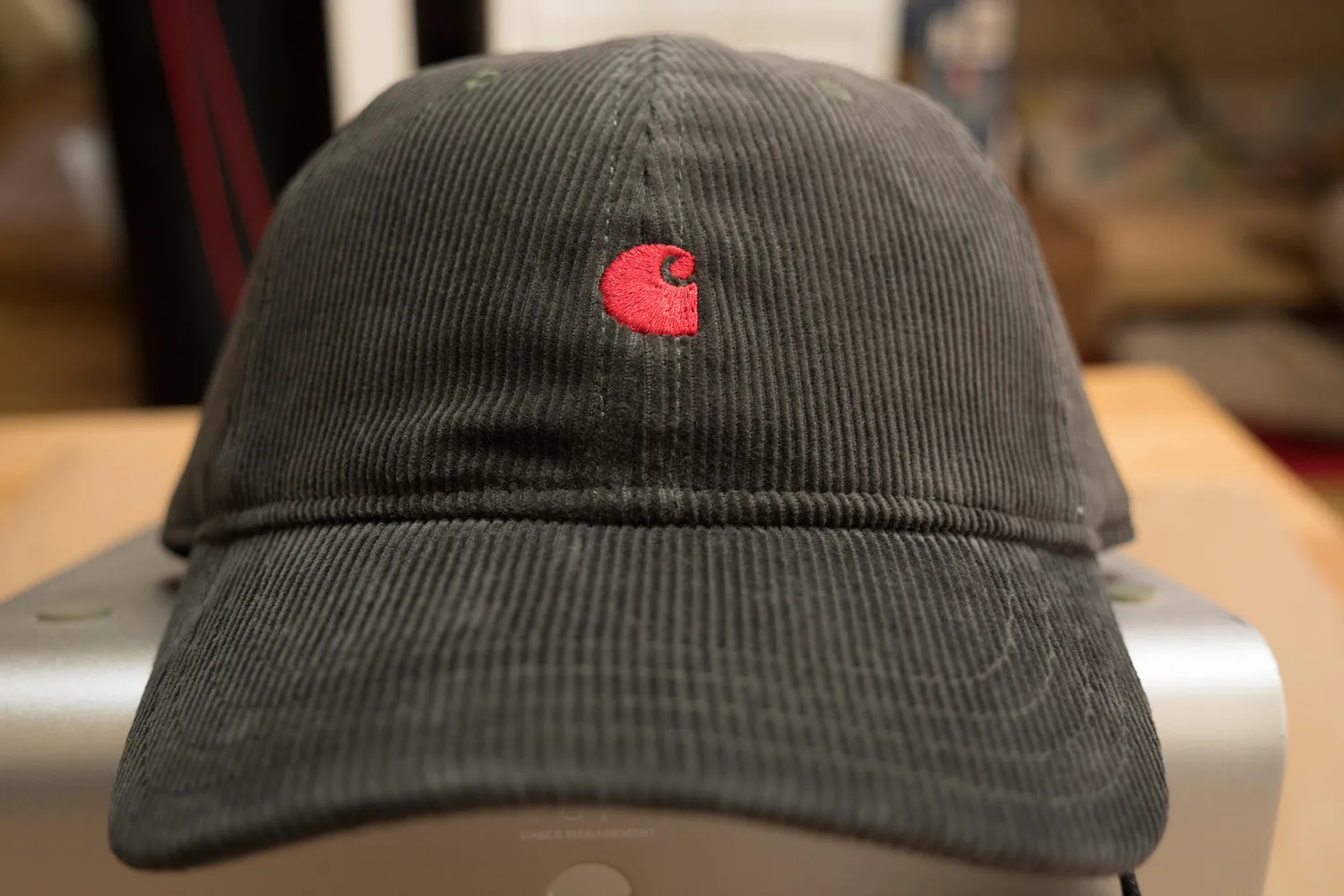 코듀로이, 흔히 골덴 재질로 따뜻한 느낌으로 겨울에 딱인 모자이다. 어두운 회색을 기본으로 하고 빨간 로고가 눈에 확 들어왔다.