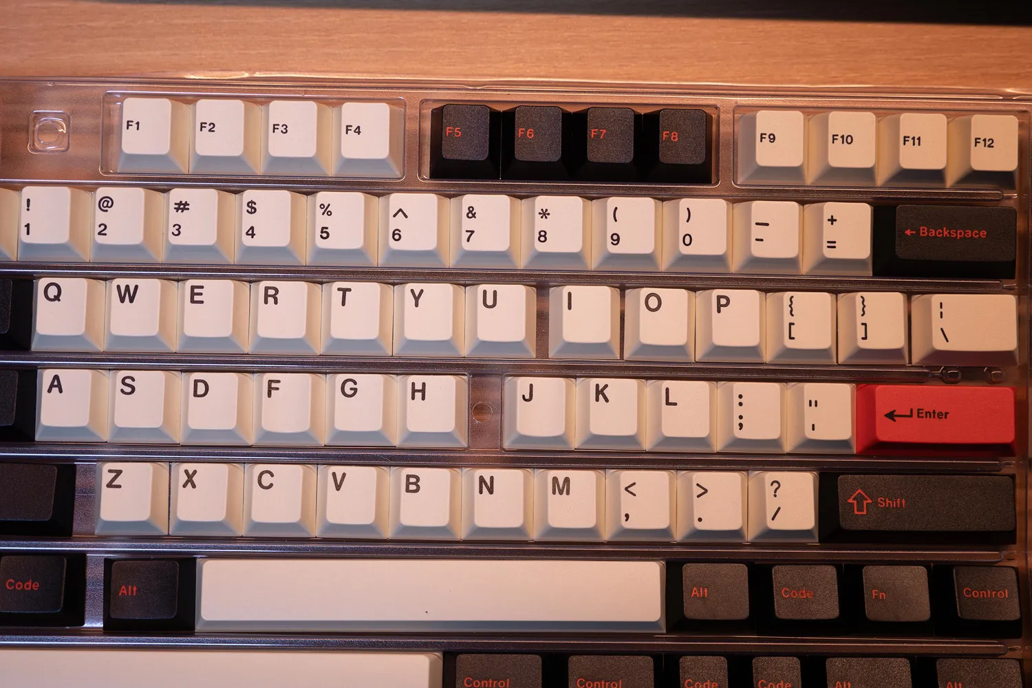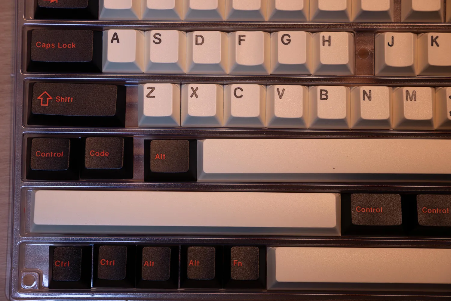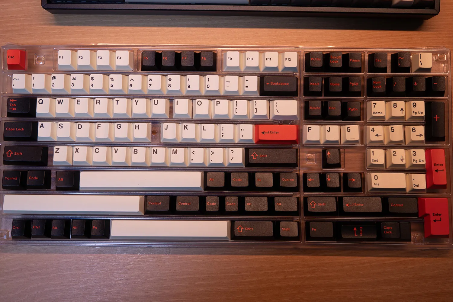 문자열은 흰색에 검은색 각인이고 기능키는 검정색 바탕에 빨간색 각인, 엔터와 ESC키는 빨간 바탕에 검은색 각인으로 참 멋지다.