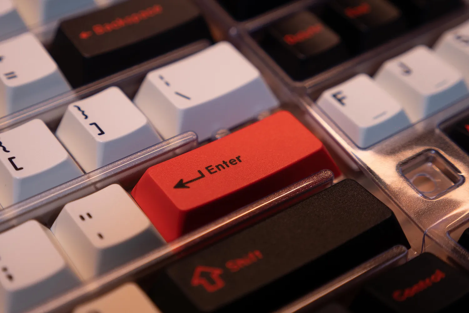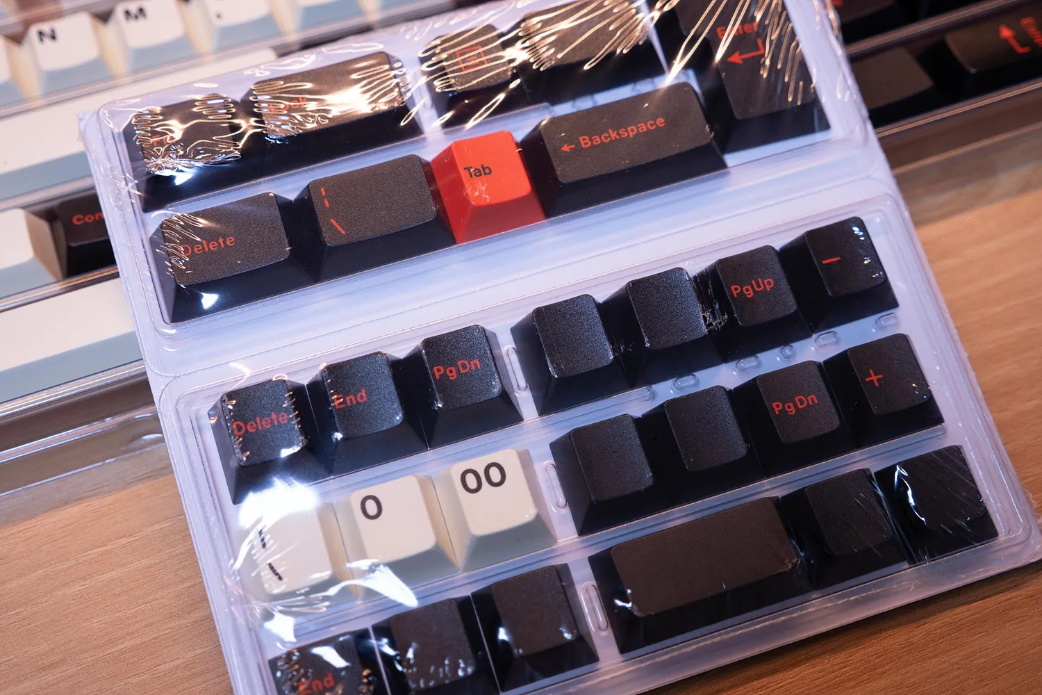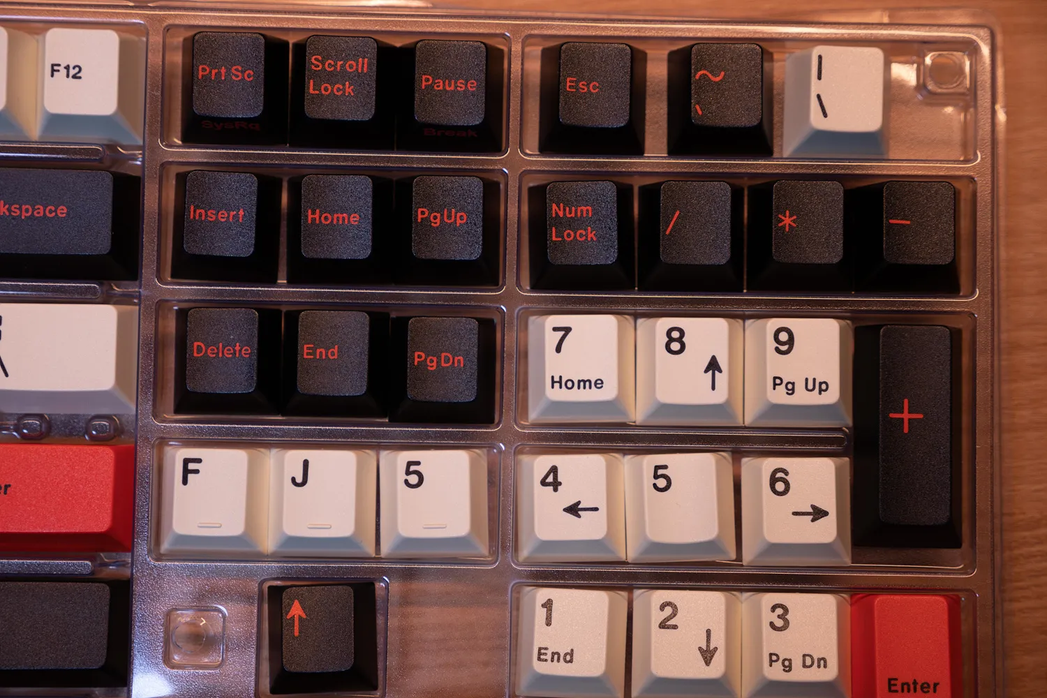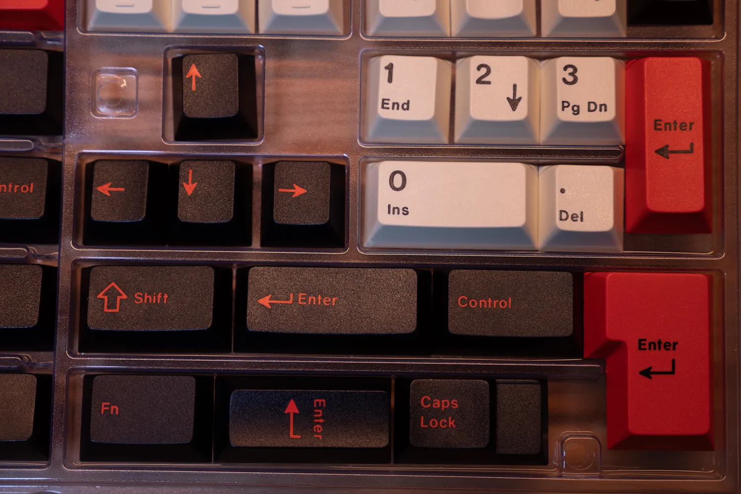문자열은 흰색에 검은색 각인이고 기능키는 검정색 바탕에 빨간색 각인, 엔터와 ESC키는 빨간 바탕에 검은색 각인으로 참 멋지다.